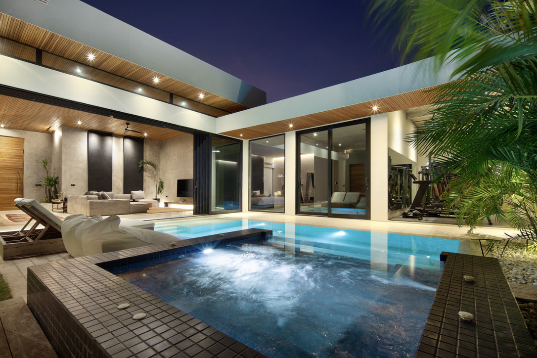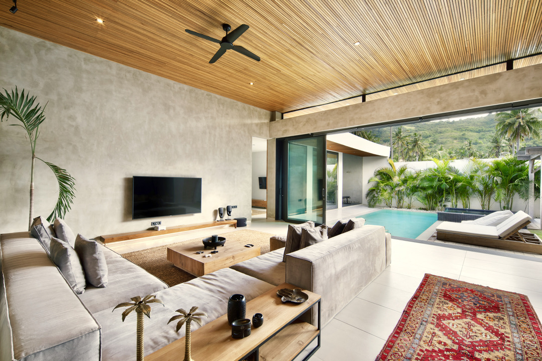 Oceano villa has 2 rooms, with 3 bathrooms and 1 main kitchen + staff kitchen, pool, office and gym with jungle hills view.
