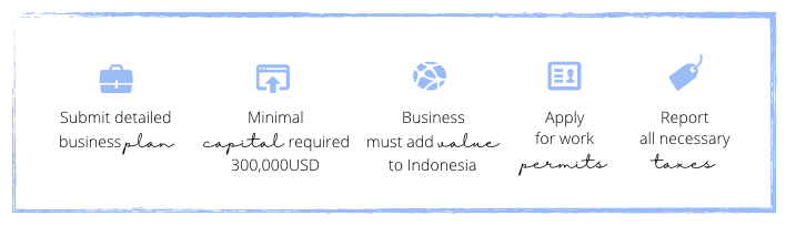 5. After this the foreign persona can apply for the necessary work permits as KITAS, also valid for 30 years and renewable.